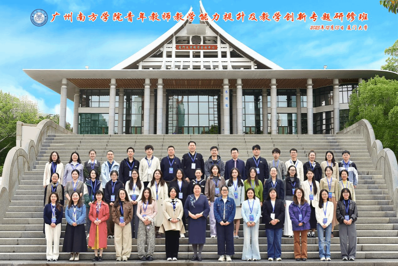 12月12日至16日,“广州南方学院青年教师教学能力提升及教学创新专题研修班”在厦门大学举行。本次研修由我校教务处教师教学发展中心主任王亚欣教授带队,教务处及各教学单位共50名青年教师参与学习。
