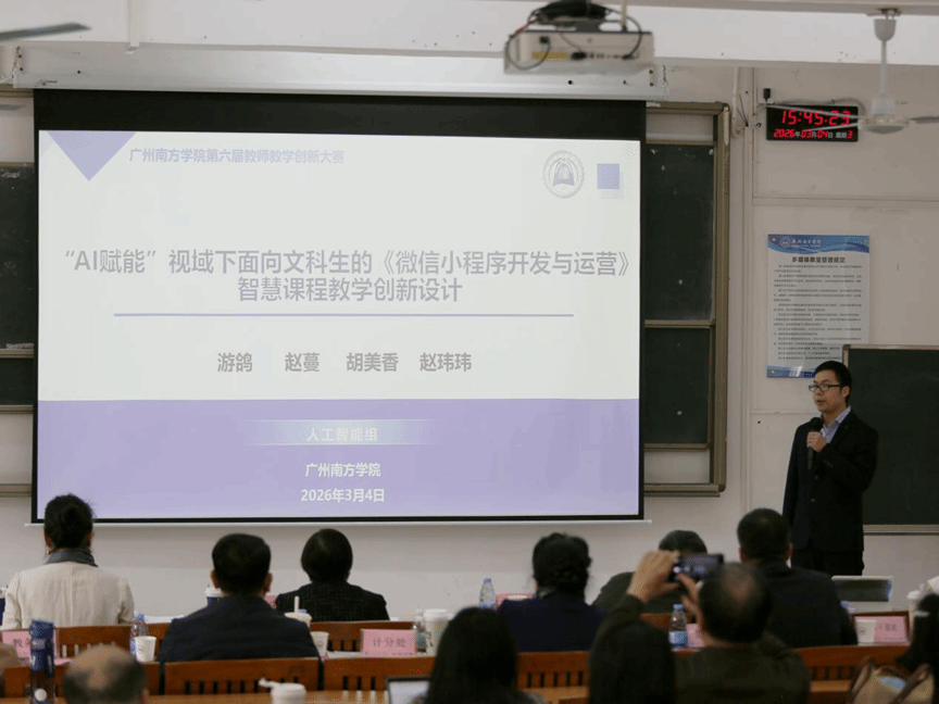 2026年3月4日,广州南方学院第六届教师教学创新大赛(正高组、新增赛道)校级决赛在教学楼1号205室成功举办。本届校赛以“推动教学创新,培养一流人才”为主题,严格遵照《关于举办第六届全国高校教师教学创新大赛广东分赛暨广东省高校教师教学创新大赛的通知》要求组织实施。大赛由教师教学发展中心牵头,联合教务处、人事干部处、党委组织统战部、监察与审计处等部门共同组织。围绕“以赛促教、以赛促创”宗旨,推动教学改革创新,激发教师教学热情,提升人才培养质量。经各院系推荐与初赛选拔,4名教师晋级本次决赛。